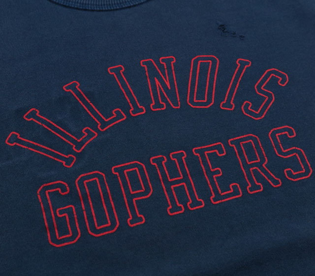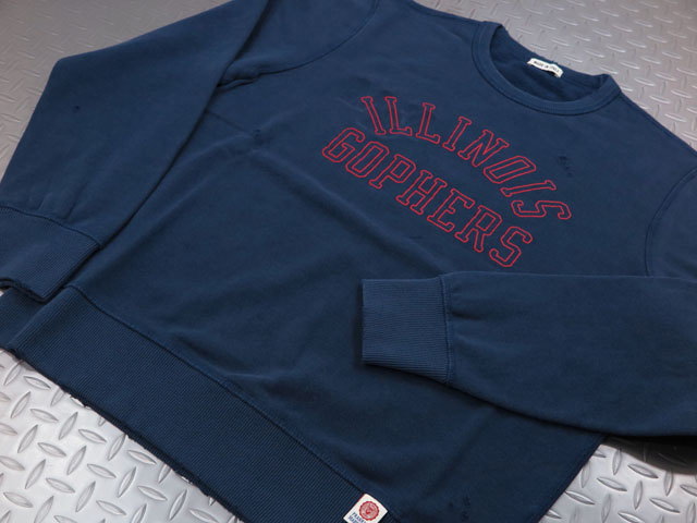 こちらは、 カレッジトレーナーを着古したような、手の込んだリアルな クラッシュ加工を施した新作スウェットシャツ。