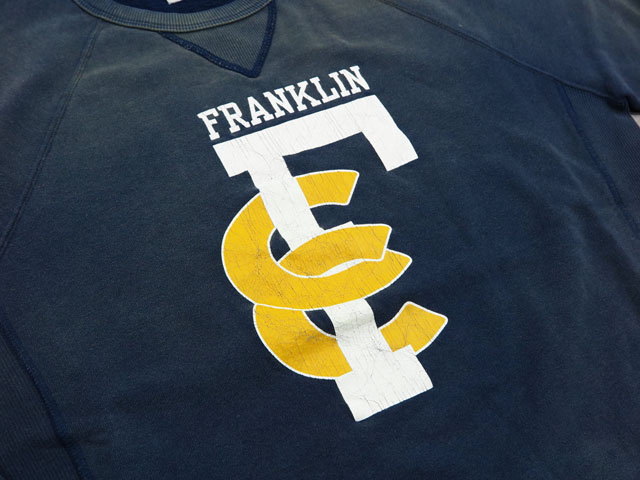 FRANKLIN&MARSHALL/フランクリンアンドマーシャル ROUND NECK RAGLAN SWEATSHIRT ラグランスウェットシャツ/ひび割れプリント入りトレーナー NAVY(ネイビー)/SKU #FLMF153AMW19